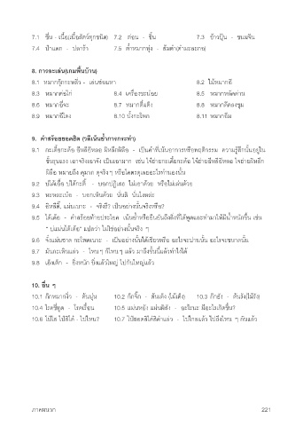 7.1 ซี่น - เนื้อ(เนื้อสัตว์ทุกชนิด) 7.2 ต่อน - ชิ้น 7.3 ข้าวปุ้น - ขนมจีน