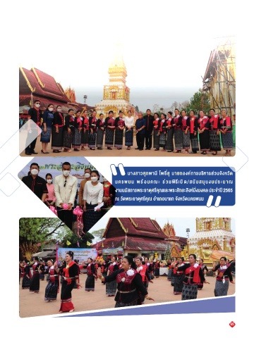 ิ นางสาวศุภพานี โพธิ์สุ นายกองค์การบรหารส่วนจังหวัด นครพนม พร้อมคณะ ร่วมพิธีเปิด/สนับสนุนงบประมาณ ิ � ่ งานนมัสการพระธาตุศรคุณและพระสักยะสิงห์มงมงคล ประจาปี 2565 ี ณ วัดพระธาตุศรีคุณ อ�าเภอนาแก จังหวัดนครพนม 65