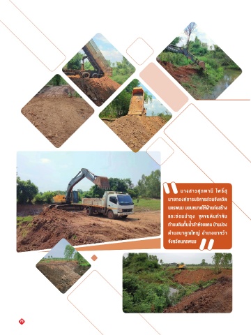 นางสาวศุภพานี โพธิ์ส ุ ิ นายกองค์การบรหารส่วนจังหวัด นครพนม มอบหมายให้ฝ่ายก่อสร้าง � ุ � และซ่อมบารุง ขดขนดินทาคัน ้ � � � ทานบดินก้นนาลาห้วยแคน บ้านม่วง ั ตาบลนาคูณใหญ่ อ�าเภอนาหว้า � จังหวัดนครพนม 78