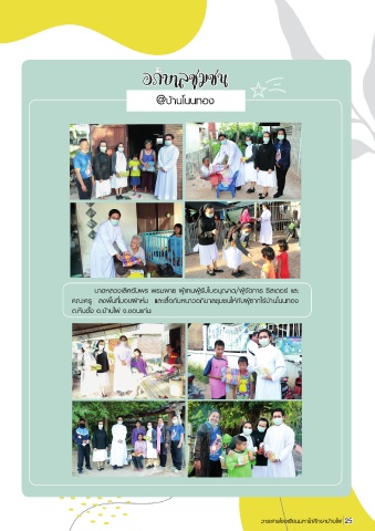 ิ อภบาลชุมชน @บ้านโนนทอง บาดหลวงเลิศอัมพร พรมผาย ผู้แทนผู้รับใบอนุญาต/ผู้จัดการ ซิสเตอร์ และ คณะครู ลงพื้นที่มอบผ้าห่ม และเสื้อกันหนาวอภิบาลชุมชนให้กับผู้ยากไร้บ้านโนนทอง ต.หินตั้ง อ.บ้านไผ่ จ.ขอนแก่น วารสารโรงเรียนมหาไถ่ศึกษาบ้านไผ่ 25