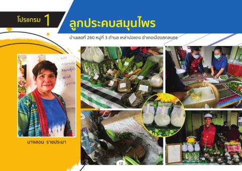 1 โปรแกรม ลูกประคบสมุนไพร บ้านเลขที่ 260 หมู่ที่ 3 ตำาบล เหล่าปอแดง อำาเภอเมืองสกลนคร นางลอน ราชประมา 12