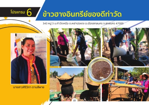 6 โปรแกรม ข้าวฮางอินทรีย์ของดีท่าวัด 343 หมู่ 3 บ.ท่าวัดเหนือ ต.เหล่าปอแดง อ.เมืองสกลนคร จ.สกลนคร 47000 นางสาวศิริวิภา ดาบสีพาย 22 23