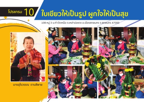 10 โปรแกรม ใบเขียวให้เป็นรูป ผูกใจให้เป็นสุข 108 หมู่ 3 บ.ท่าวัดเหนือ ต.เหล่าปอแดง อ.เมืองสกลนคร จ.สกลนคร 47000 นางอุไรวรรณ ดาบสีพาย 30 31