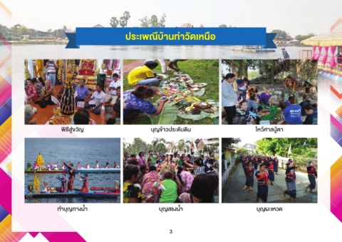 ประเพณีบ้านท่าวัดเหนือ พิธีสู่ขวัญ บุญข้ำวประดับดิน ไหว้ศำลปู่ตำ ท�ำบุญทำงน�้ำ บุญสรงน�้ำ บุญผะเหวด 2 3
