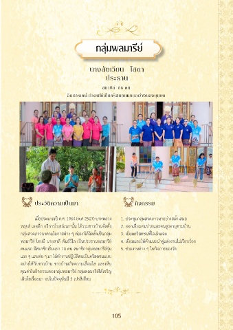 คนแรก มีสมาชิกเริ่มแรก 10 คน สมาชิกกลุ่มพลมารีย์รุ่น 5. ช่วยงานต่าง ๆ ในกิจการของวัด