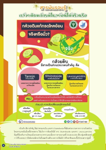 กล้วยดิบ มส่ารส่ำค์ัญ ได้แก่ ส่ารแทนนิน และส่าร Sitoindoside ซ้�งมผู้ลชุ่วยบรรเทาอาการกรดไหลย้อน