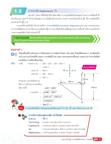 ตอบ การกระจัดลัพธ์ในการเดินของนายด�ามีขนาดเท่ากับ 400 2 เมตร ทิศตะวันออกเฉียงใต้