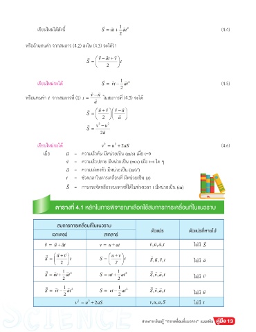 เขียนใหม่ได้ดังนี้ S = ut + at (4.4)