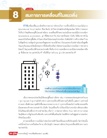 ภาพที่ 8.1 แสดงลักษณะการตกอย่างอิสระเนื่องจากแรง