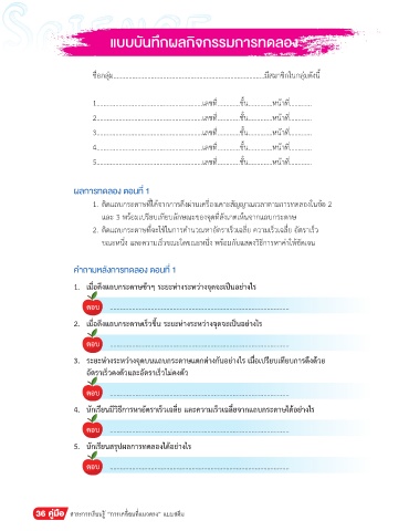 36 คู่มือ สาระการเรียนรู้ “การเคลื่อนที่แนวตรง” แบบสตีม