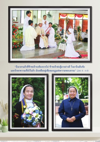 “ถึงเวลาแล้วที่ข้าพเจ้าจะต้องจากไป ข้าพเจ้าต่อสู้มาอย่างดี วิ่งมาถึงเส้นชัย และรักษาความเชื่อไว้แล้ว ยังเหลืออยู่เพียงมงกุฎแห่งความชอบธรรม” (2ทธ 4 : 6-8) 2 ซิสเตอร์เซชีลีอา ประภาพร นาแว่น