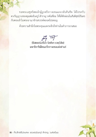 16 : ที่ระลึกพิธีปลงศพ คุณพ่ออันดรูว์ สำ�ร�ญ วงศ์เสงี่ยม