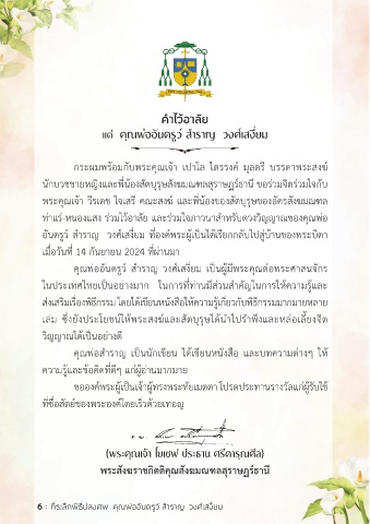 Page 8 - ที่ระลึกพิธีปลงศพ คุณพ่ออันดรู สำราญ วงศ์เสงี่ยม 19 กันยายน 2024
